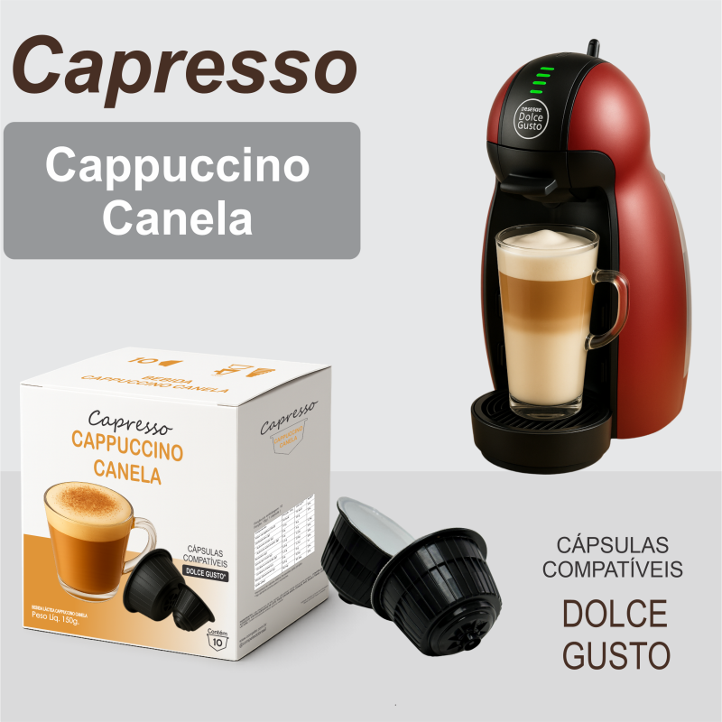Aproveite o sabor autêntico do nosso Cappuccino Canela, agora na versão em cápsulas compatíveis com máquinas Dolce Gusto.