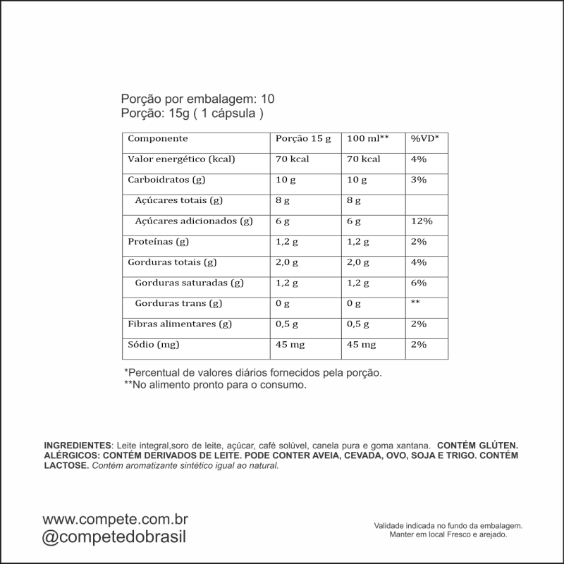 Leite integral, soro de leite, açúcar, café solúvel, canela pura e goma xantana.