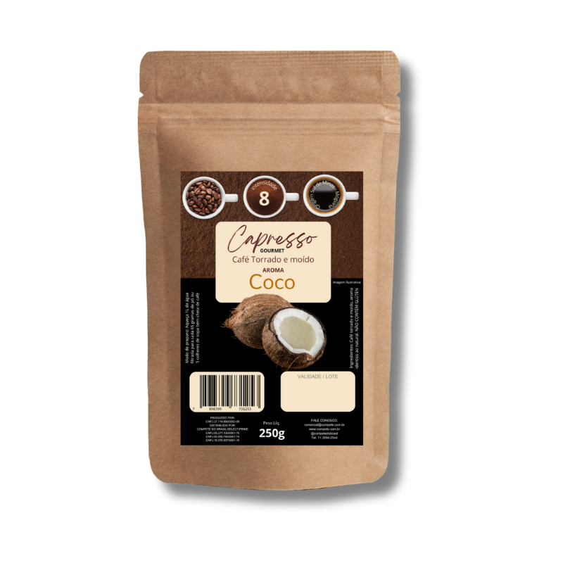 Café torrado e moído sabor coco pacotes 250gr cx com 10