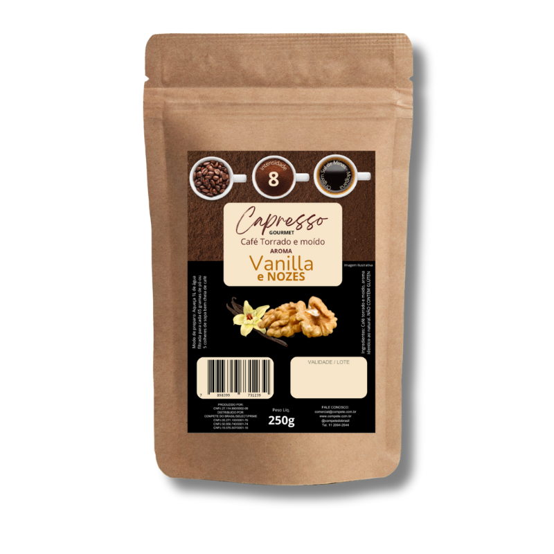Café torrado e moído sabor Vanilla e nozes pacotes 250gr cx com 10