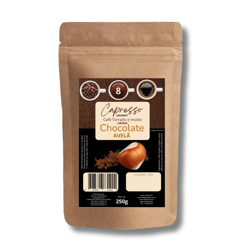 Café torrado e moído sabor chocolate Avelã pacotes 250gr cx com 10